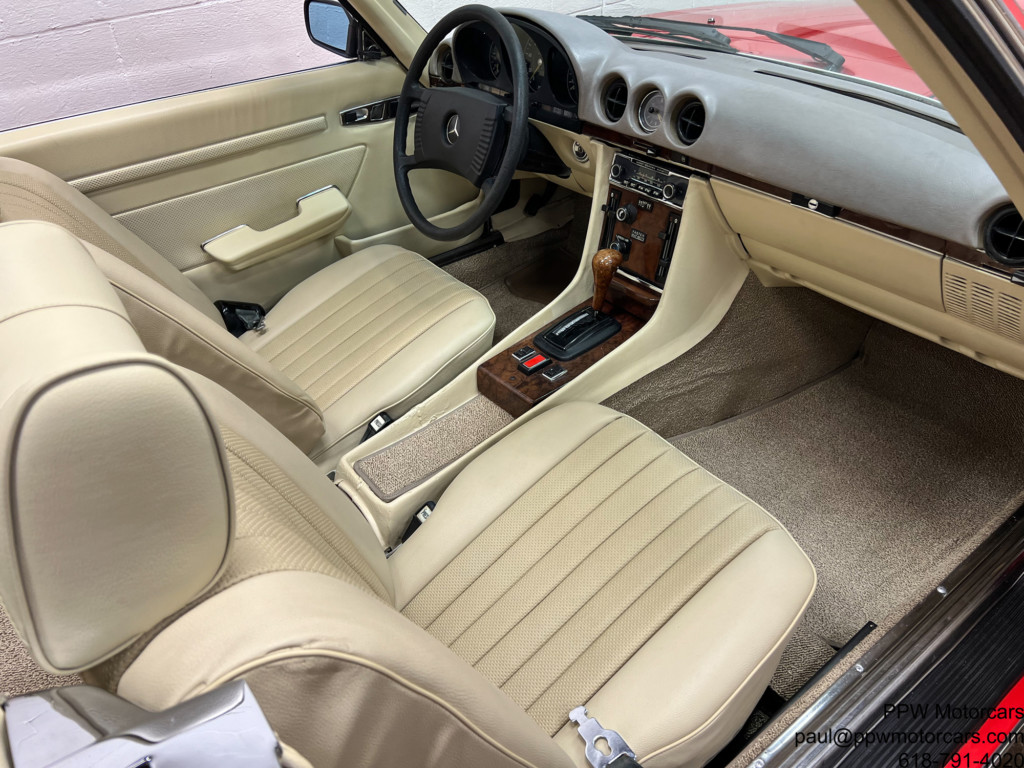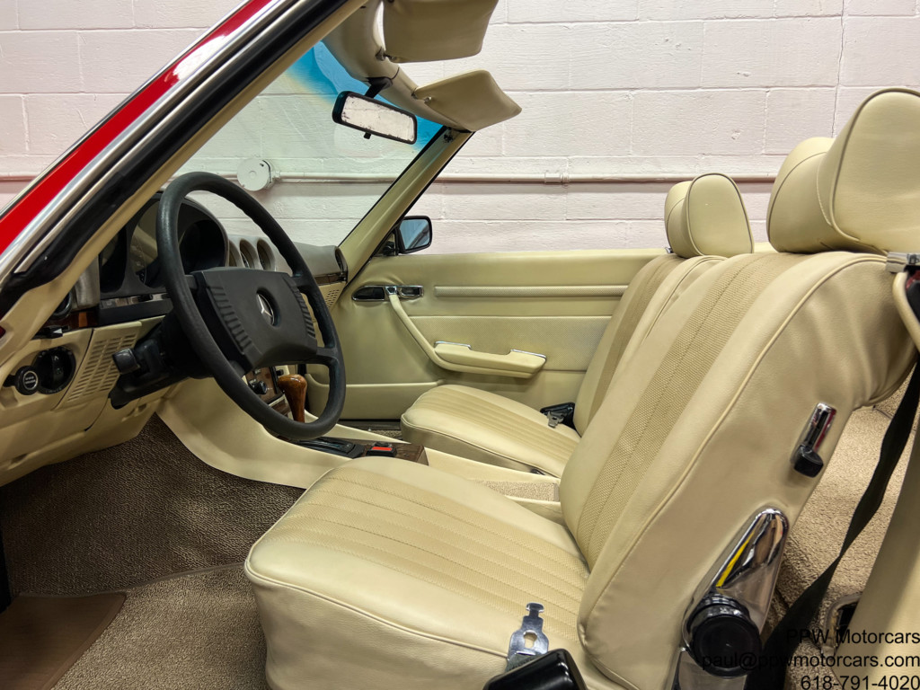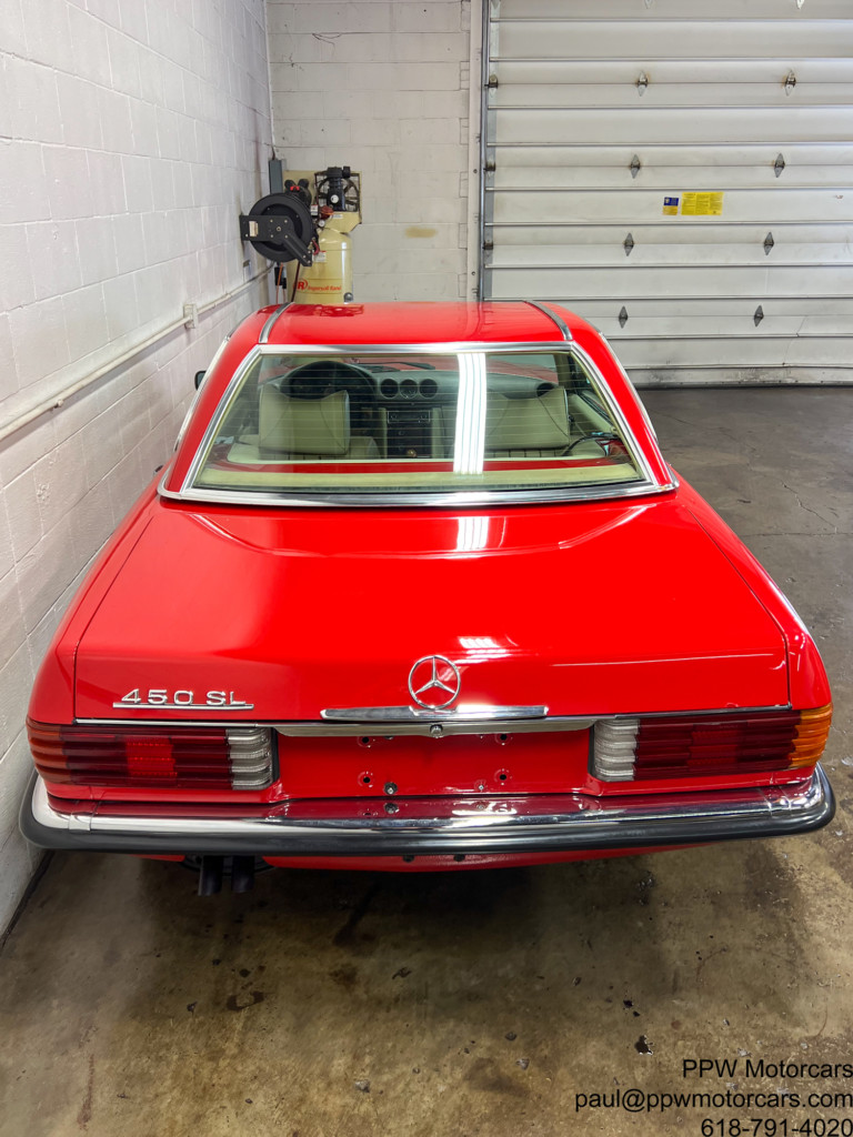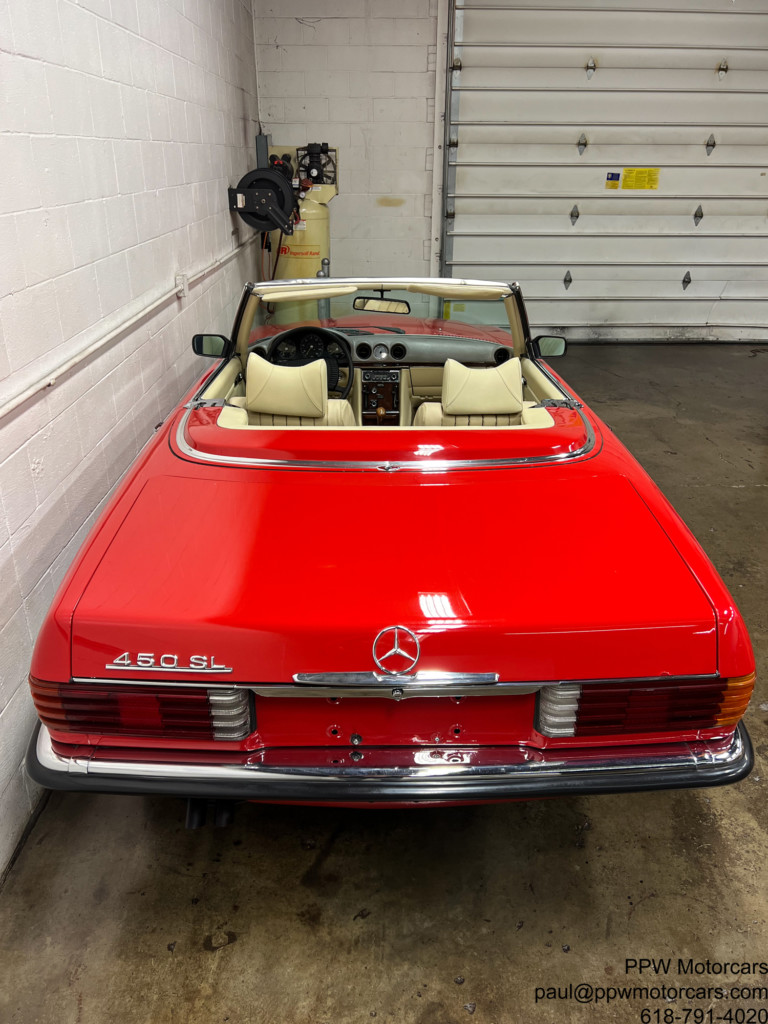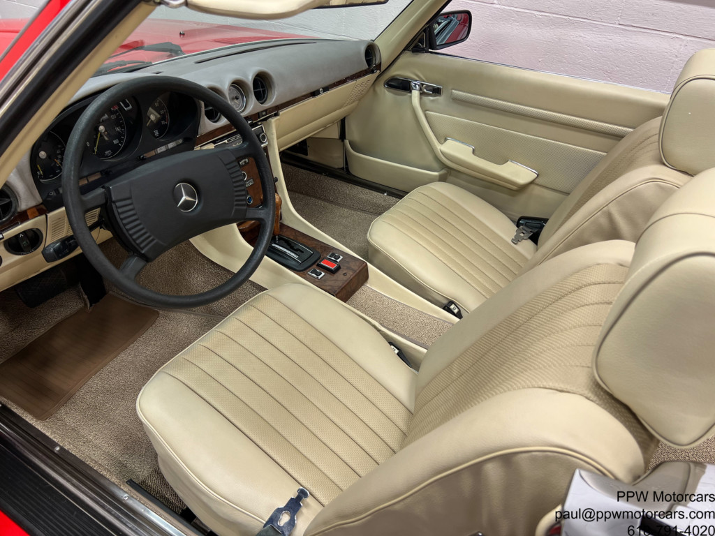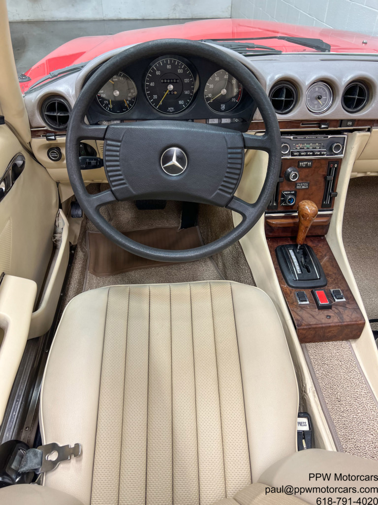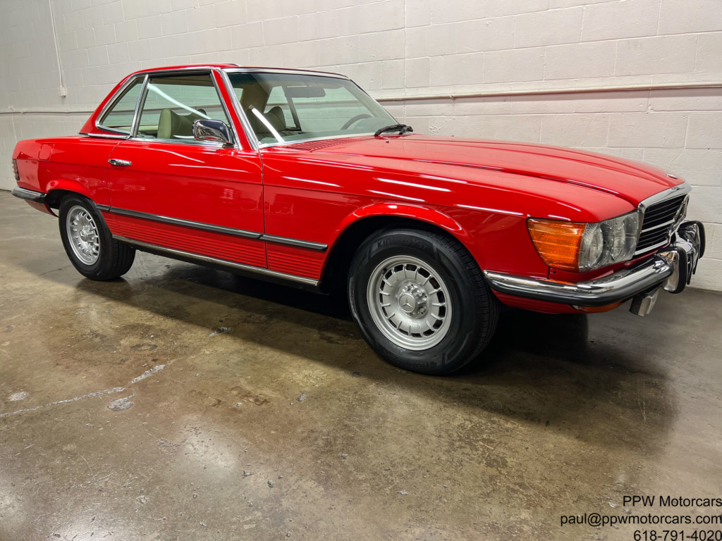 PPW Motorcars is pleased to offer what is one of the finest Mercedes-Benz 450SL that we have had to date. This beautiful and highly original 1973 Mercedes-Benz 450SL, which is equipped in the iconic and Signal Red over a soft and supple Beige Interior is as good as they come. This particular example has been ordered with every option available; fitted with Climate Control Air Conditioning, Cruise Control, Power Windows, Hardtop, Right Outside Mirror, Becker Europa Stereo, Electric Antenna, and Bundt Wheels. Setting this vehicle apart from all others, aside from mileage is the wonderful condition throughout Having been lovingly cared for by just three owners from new this example has been meticulously cared for with an ‘open checkbook philosophy’ and has always received what was needed. Further, this example has just had a major service where much was addressed from the timing chain to the modern and better ignition, to fluids, gaskets, new tires, freshly powder coated wheels, and beyond! Nothing has been left to chance with this example. This is one of the only truly complete examples available with all books, manuals, Mercedes-Benz service booklet, jack, spare tire, and best of all has just been serviced! We are proud to offer what we believe to be one of, if not the best example of the coveted 450SL Mercedes available anywhere. Offered to the collector, enthusiast, or investor who appreciates the magnificent investment potential of this magnificent motorcar! Bid with confidence-you will not be disappointed in this magnificent motorcar!
