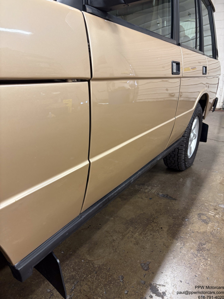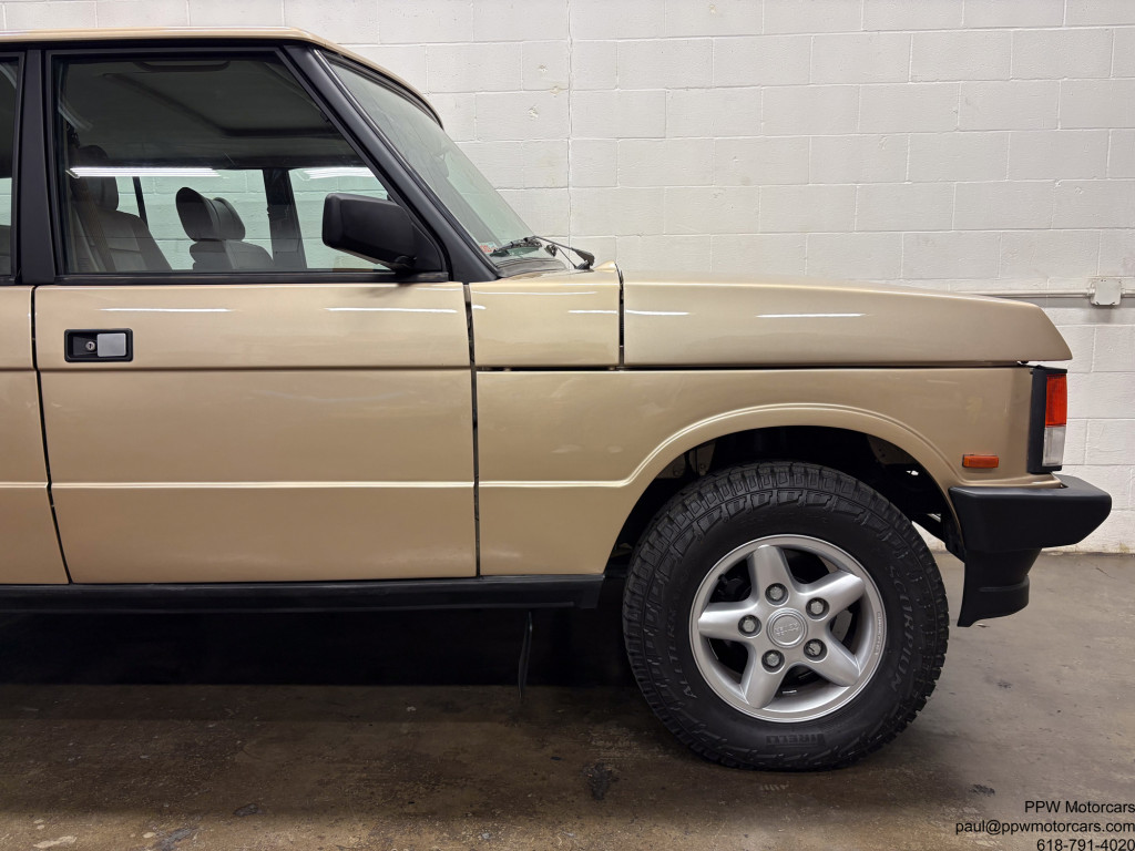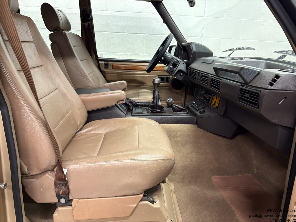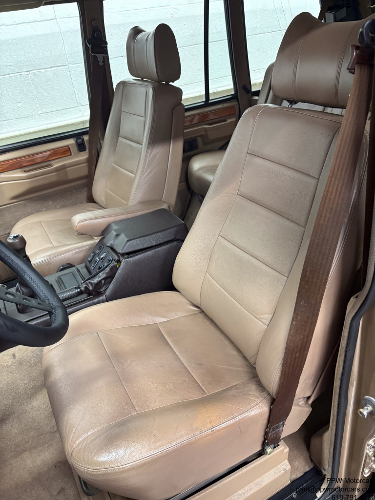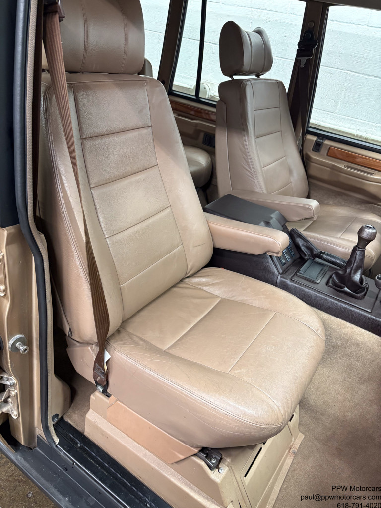 PPW Motorcars is pleased to offer what we believe to be the best Range Rover Classic on the market anywhere, at any price. This 1992 Land Rover Range Rover in the classic Roman Bronze Metallic over a soft, supple, and ORIGINAL MATERIAL Tan Leather interior is as good as it gets! If you are looking at one of these cars then you already know how wonderful the Range Rover Classic’s are to drive, but this one is exponentially better than any other vehicle for sale. This drives like it did new whereas other vehicles for sale drive like an old truck. You can get in this and drive 95mph without a shake, rattle, and work the steering wheel with one finger. This is not an exaggeration, message me for an odometer photo, it handles like a lower mileage more recent Range Rover due to the entirely new suspension bushings, shocks, and beyond that were replaced during the restoration. Most of these vehicles have been abused and not cared for but this one was restored with wonton disregard for finances and economics on resale. If you scroll to the last photos, you can see that it was completely disassembled, blasted, and acid bathed, before being repainted top, bottom, inside, and was always stored inside in a climate controlled garage, never driven in bad weather, serviced with a blank checkbook philosophy to the most stringent standards, and driven carefully. Furthermore, it has had recent tires and a fresh oil change to ensure that it is ready for the next owner. Every other “restored” example for sale is asking at least as much but has had a low level cosmetic restoration. Vehicles from places like Stray Dog Classics and other “top” sellers advertise vehicles from $75,000-$85,000 that have just had a repaint, new (and incorrect) interior, some light service work, new tires, and a fancy looking radio with a screen you can’t even see while driving. Compare this example to any other and you will see the immense amount of work that went into this one and no others can replicate, as the cost would exceed double the asking price here. As if that wasn’t enough, this one is configured in the most desirable engine and transmission setup, a turbo diesel and 5 speed manual. Unlike the gasoline V8’s, that have substantial fundamental issues, this is regarded as one of the most reliable engines ever built by any manufacturer. Further, with a 5 speed manual, it is quite zippy and delivers it’s 254NM of Torque effectively for an effortless driving experience. It also has had the air suspension exchanged for a shock and spring setup, removing any worry of expensive servicing and reliability issues. Another small note that is important safety wise, is that many of the other vehicles offered have had their ABS deleted as it is expensive to rebuild the system. As apart of the restoration, this was addressed and has a functional ABS system to keep you safe in any weather. While no classic vehicle is perfect, we do not believe there to be a nicer one in existence. It comes with 4 keys, tools, spare tire, original steering wheel (can be reinstalled at buyers request), and anything else a prospective buyer could possibly want. If you are looking for the best Range Rover Classic on the market, then you have found it, full stop. This car would be suitable to be drive from New York to LA today, shown at any English show, or put in a collection next to a Ferrari 250gt SWB. We encourage any buyer to come see this vehicle in person as the first person to see it, will buy it on the spot. This stunning example, which we believe there to be no equal to for sale anywhere, is offered for the enthusiast who understands and appreciates a true driver’s experience of this future collectable and iconic Range Rover Classic!