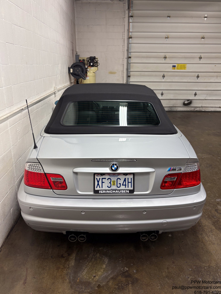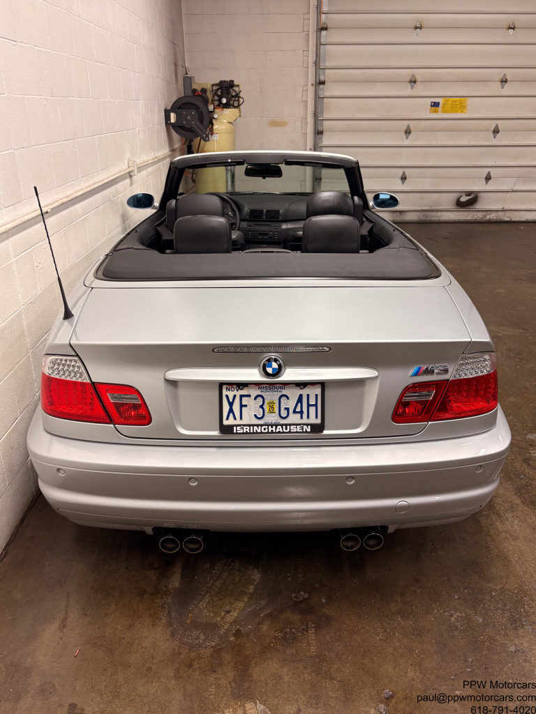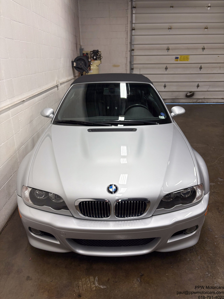 PPW Motorcars is pleased to offer what we believe to be the best BMW M3 SMG on the market anywhere, at any price. This 2004 BMW M3 Convertible in the classic Titanium Silver Metallic over a soft and supple Black Leather interior is as good as it gets! If you are looking at one of these cars then you already know how wonderful and exhilarating the e46 M3 cars are to drive, but this one is just that much better with the absolutely spectacular condition throughout. Most of these vehicles have been abused and not cared for but this one is an 1 owner vehicle by a very particular collector and physician who has vehicles in his garage such as an AACA grand national winning truck he had restored. It was always stored inside in a climate controlled garage, never driven in bad weather, serviced with a blank checkbook philosophy to the most stringent standards with all records retained, and driven carefully. It turned out not to be necessary but as seems to be the case, everyone wants to know if the rod bearings have been done, which is not an issue if the cars are warmed up properly but it was just done to prepare it for sale to avoid any discussion about whether it needed it or not. Furthermore, it has had recent tires and brakes with around 1,000 miles on them along with regular SMG fluid flushes. The top was conditioned and protected yearly, which is what it looks like new. It comes with two keys, books, tools, window sticker, records from new, and anything else a prospective buyer could want. If you are looking for the best e46m SMG on the market, then you have found it, full stop. This car would be suitable to be drive from New York to LA today, shown at any BMW show, or put in a collection next to a 1M. We encourage anyone buyer to come see this vehicle in person as the first person to see it, will buy it on the spot. This stunning example, which we believe there to be no equal to for sale anywhere, is offered for the enthusiast who understands and appreciates a true driver’s experience of this future collectable and iconic BMW M3 Convertible!